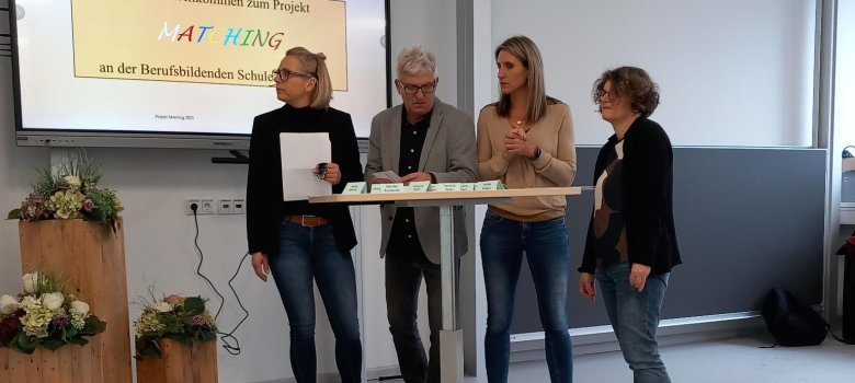 Ansprechpartner: Unternehmensberater Jörg Rahn und von der BBS Pirmasens Kerstin Belyea (Schulleiterin), Katja Klein (Pädagogische Leiterin) und Marco Heim (Abteilungsleiter)